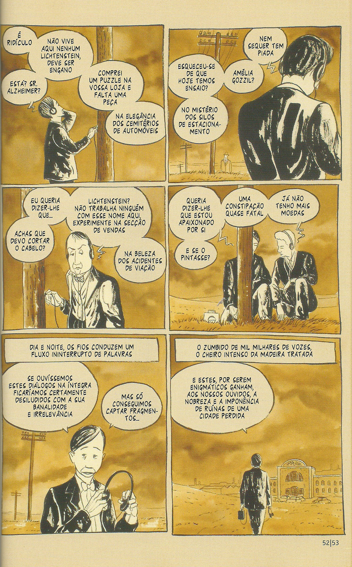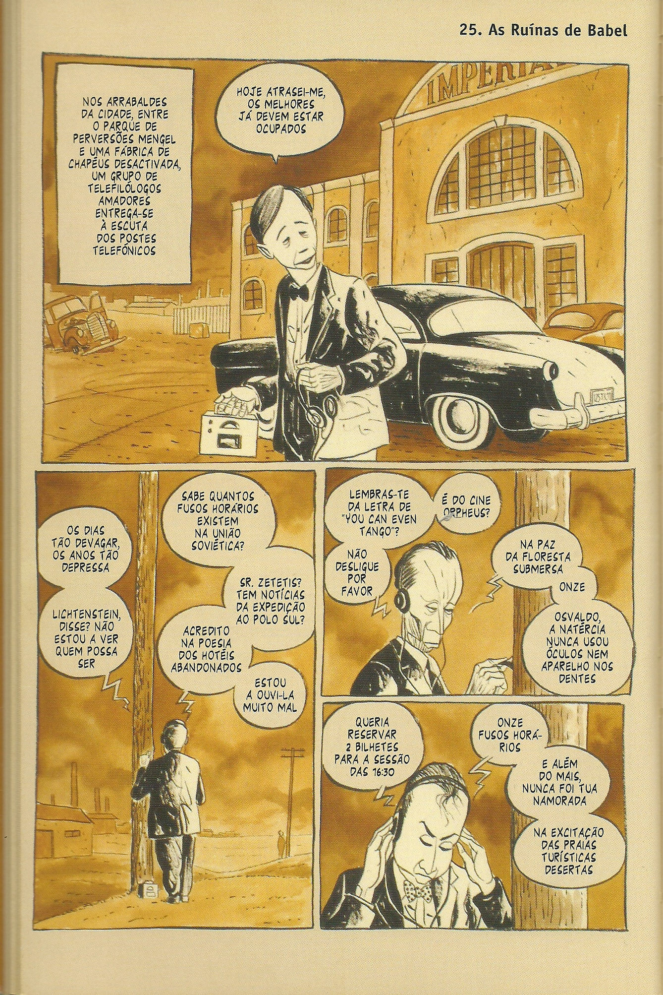 E esta era a parte do texto em que eu deveria explicar a vocês algo sobre a série, mas não encontro as palavras. Não por ser algo muito sublime. Percebo agora que nunca soube explicá-la muito bem. É sobre uma péssima banda de jazz, mas não é só isso. Sobre uma cidade melancólica, sobre personagens solitários, sobre neuroses do mundo, sobre utopias, ruínas e o encanto das coisas obsoletas, sobre a nostalgia do não vivido, sobre ideias cretinas aceitas com entusiasmo, sobre nefelibatas incorrigíveis (eis uma palavra ótima que o autor me ensinou).